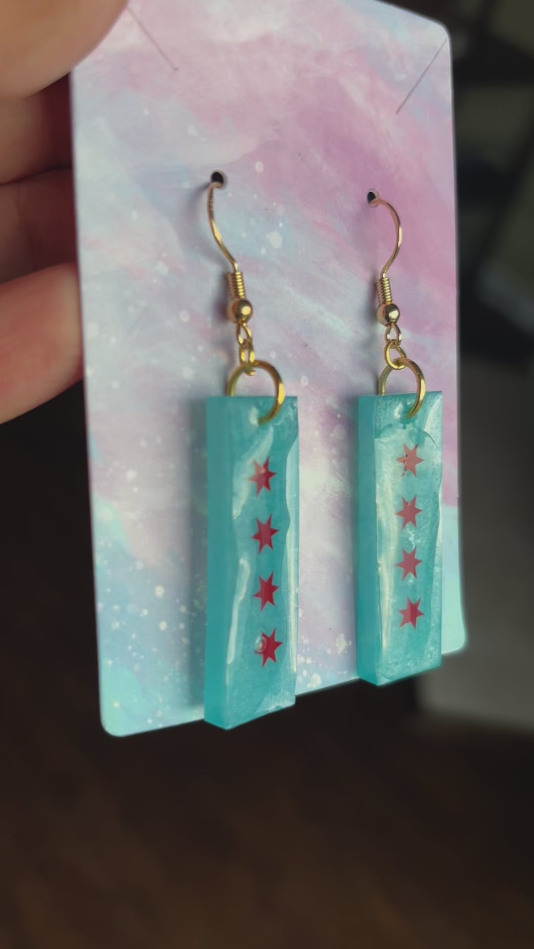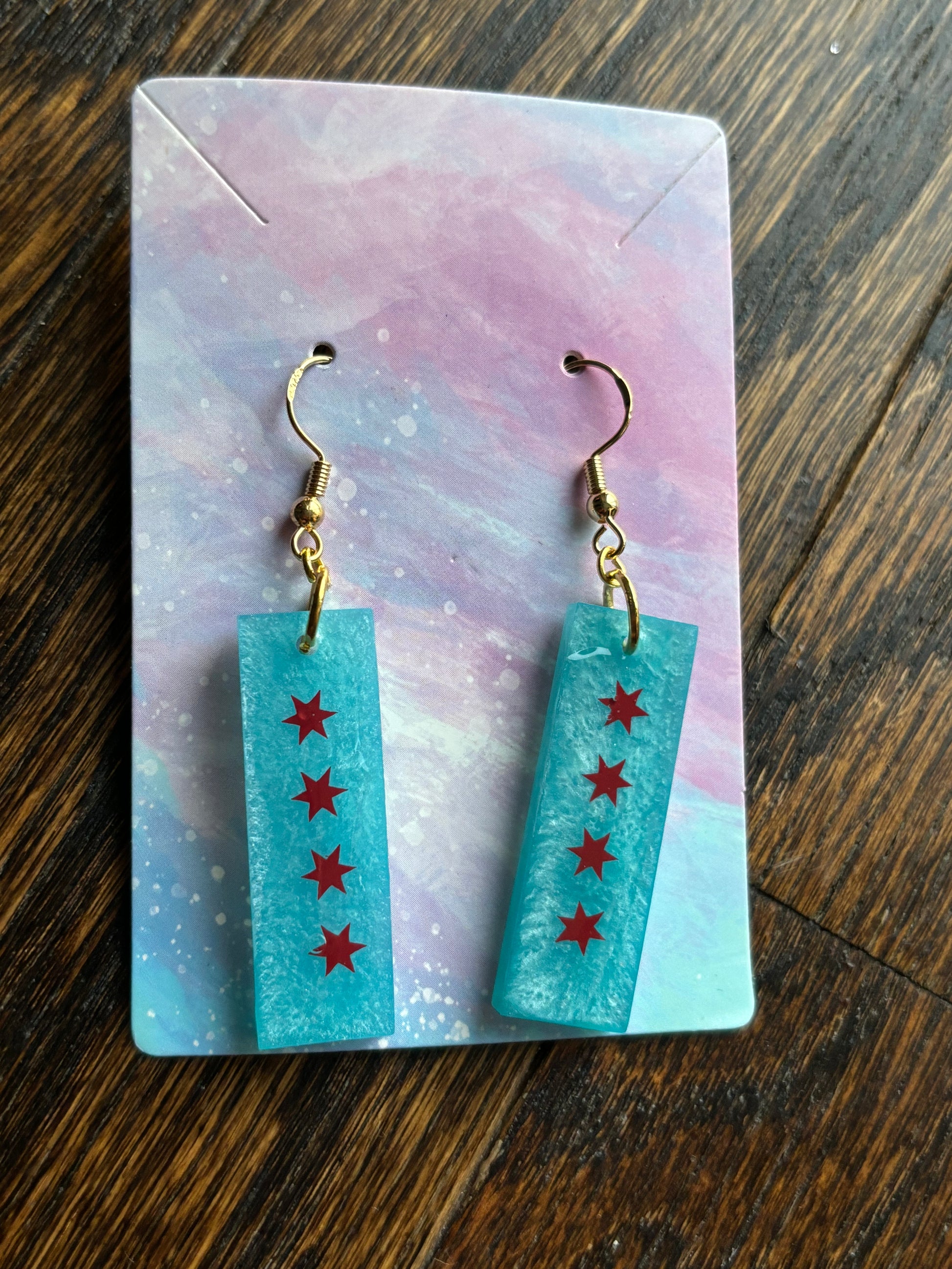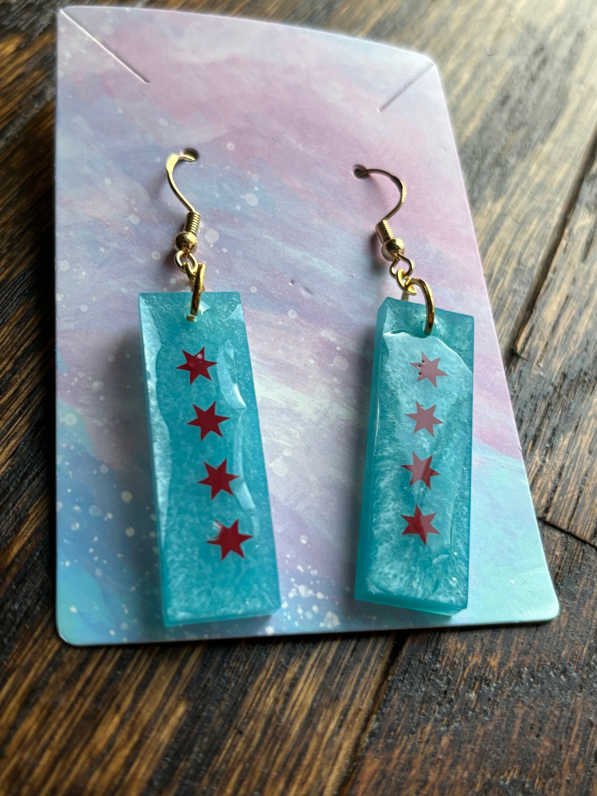 These Chicago themed earrings are lightweight and a vibrant blue that will catch any eye and tell everyone where you're from.