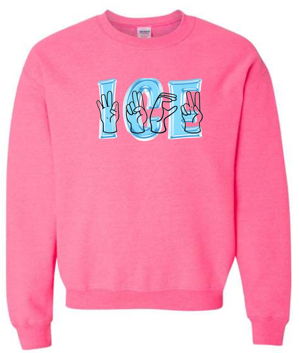 F*** (in sign language) ICE. 20% of proceeds of this product will be donated to Illinois Coalition for Immigrant and Refugee Rights.