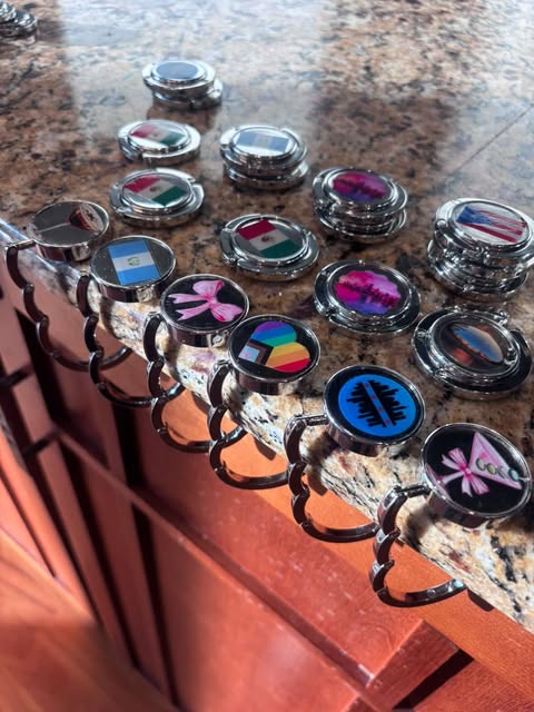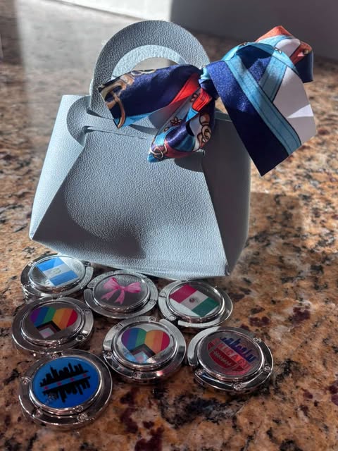 Keep your purse off sticky floors with this handmade purse holder, perfect for sporting events, concerts, bars, and everyday use. Compact, stylish, and stadium seat friendly, it folds flat so you can easily toss it in your bag. Want to customize?! Please see our Custom Order Form.